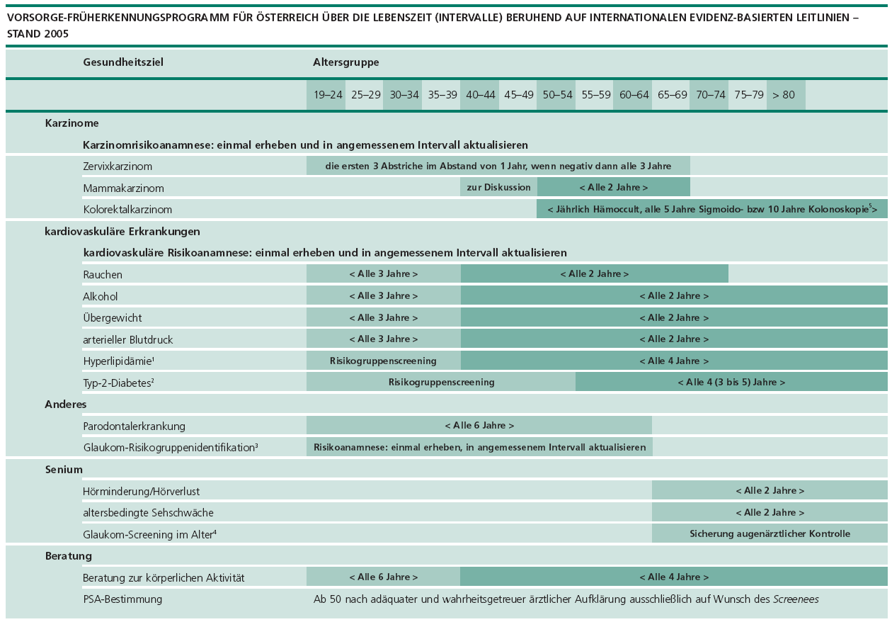 Suchbegriffe: Vorsorgeuntersuchung, Lebenszeittafel