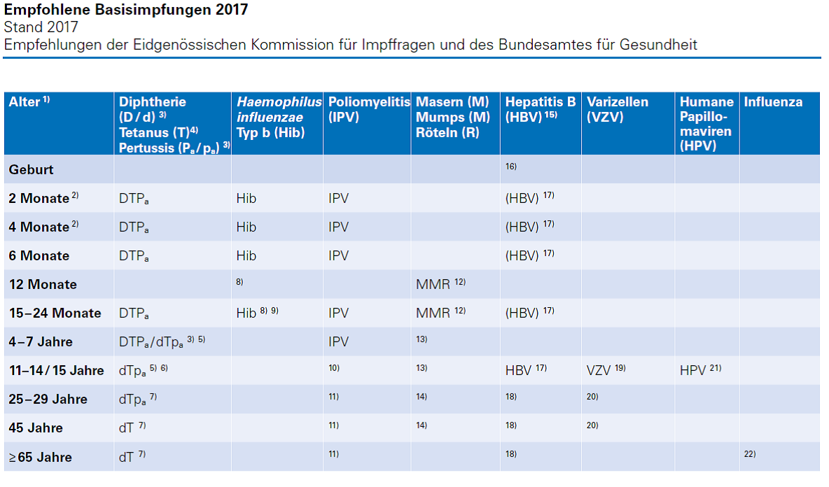- empfohlene Basisimpfung für alle 11- bis 15-jahrigen Jugendlichen,